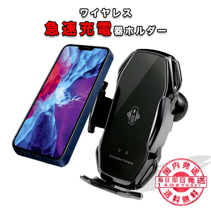 車載ホルダー ワイヤレス Qi 自動開閉 スマホ ホルダー 車載用 スマホ スマートフォン ホルダー 急速充電 充電 充電器 スタンド 車